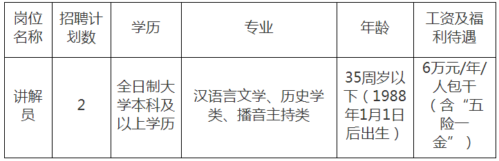 附件:2023年黄石市文物保护中心招聘讲解员岗位表