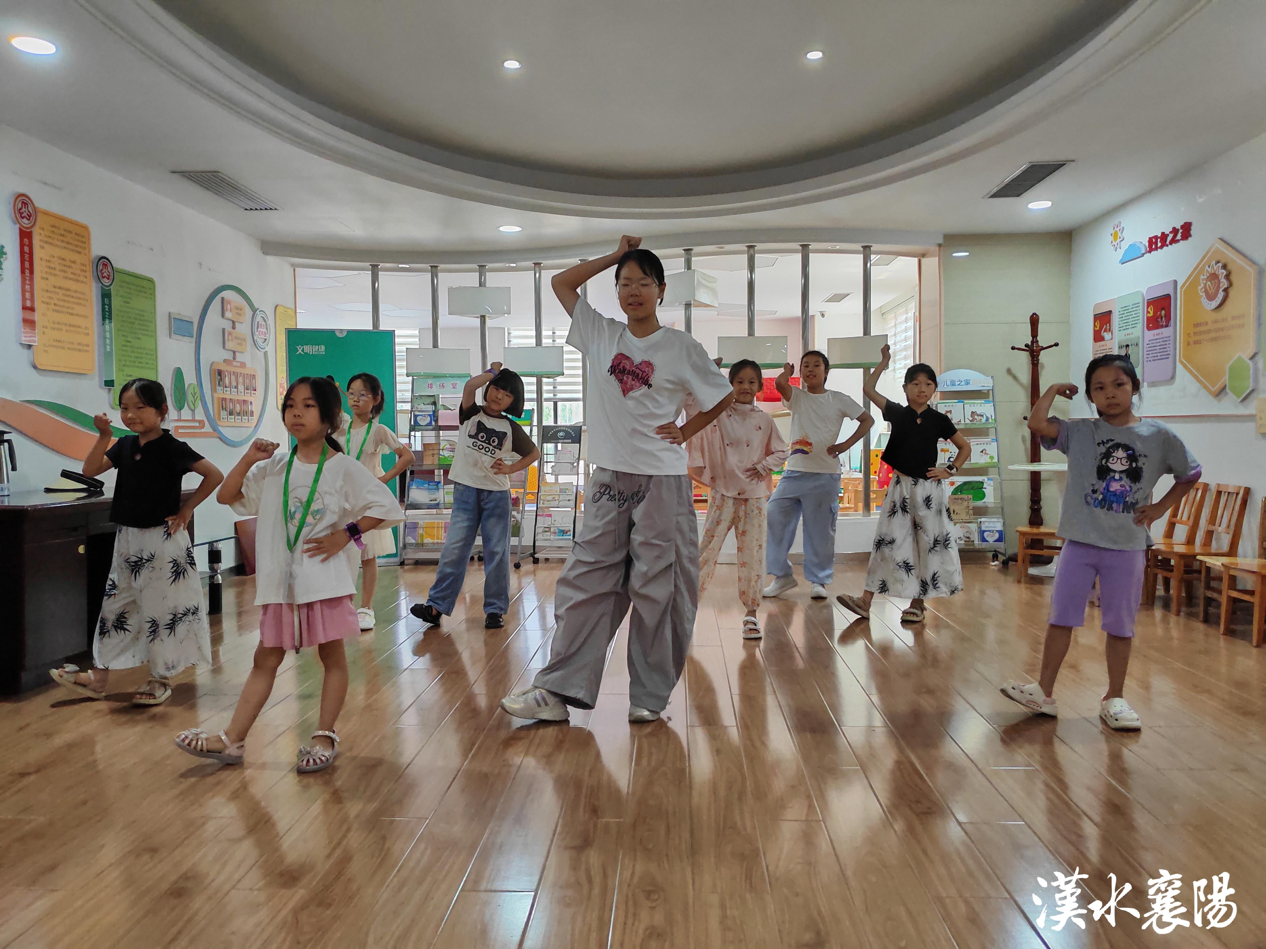7月15日上午,襄城区檀溪湖社区活动室内,在歌曲《小城夏天》欢快的旋律下,五年级的曾一诺正和小伙伴们跟着湖北文理学院“音为爱”志愿服务队队长秦羽欣学跳舞。“在这里,姐姐们辅导我作业,教我唱歌跳舞,特别开心!”课间休息时,曾一诺兴奋地分享着她的收获。